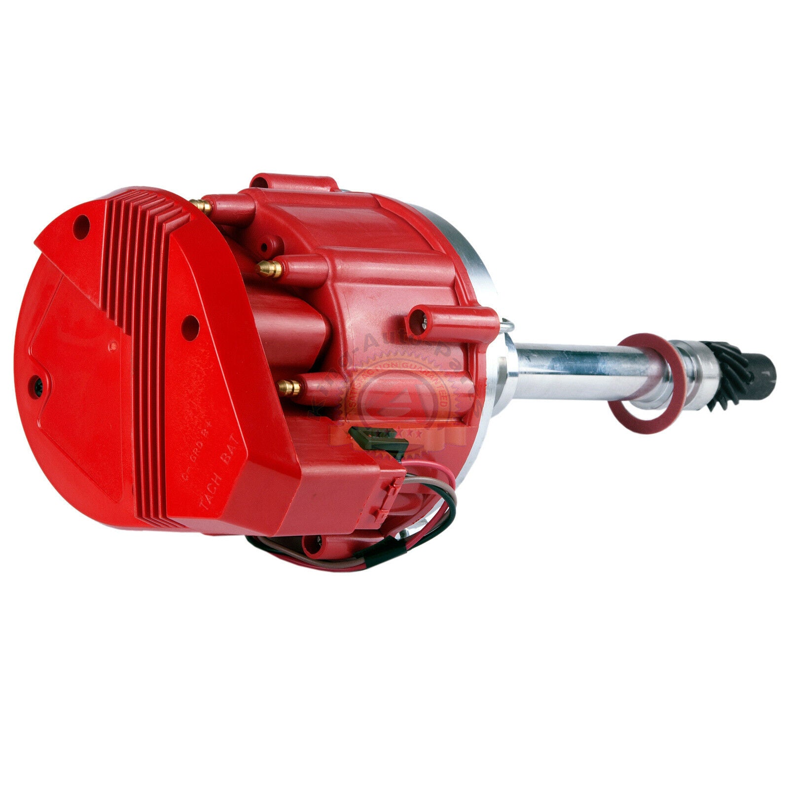 Fully CNC machined and polished housing with adjustable vacuum advance. Each distributor has a 65,000 volt Super Coil and high performance 4 pin module to insure accurate and reliable timing to 7,500 RPM. Has Accel style coil cover which acts as wire retention and helps dissipate heat away from the coil. The 4340 Chrome moly gear will work with cast or billet cams. Premium cap with brass terminals. True spark alignment for instant throttle response.